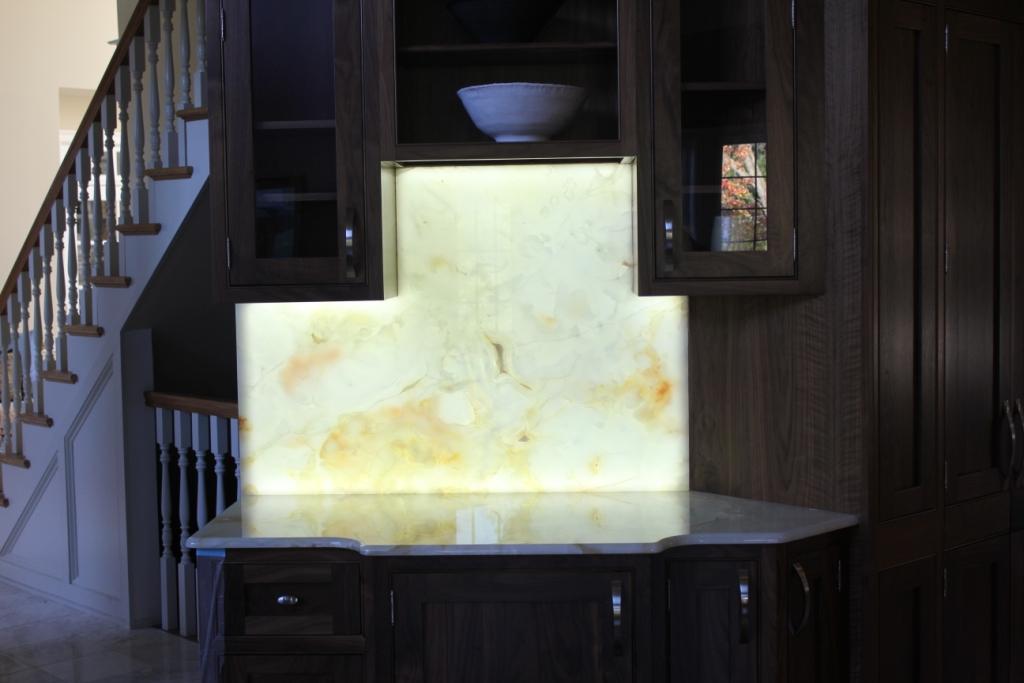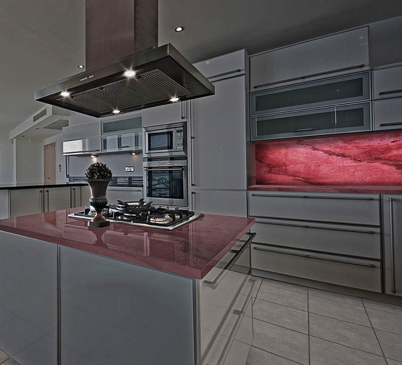 Kitchen Backsplash in Crystalline Translucent Wine Marble
