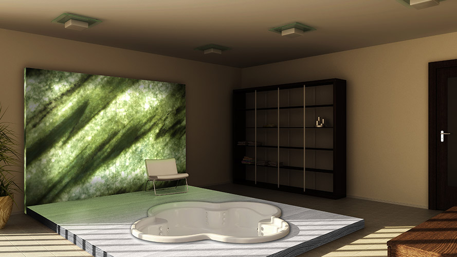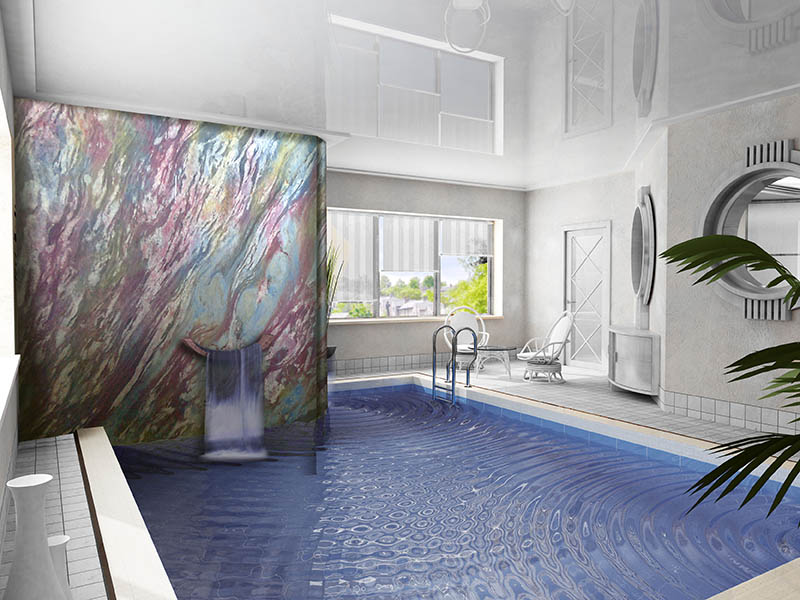 Room Dividing Wall for Swimming Pool Area in Crystalline Color Planet Marble