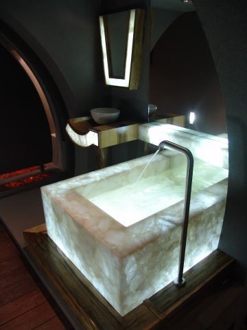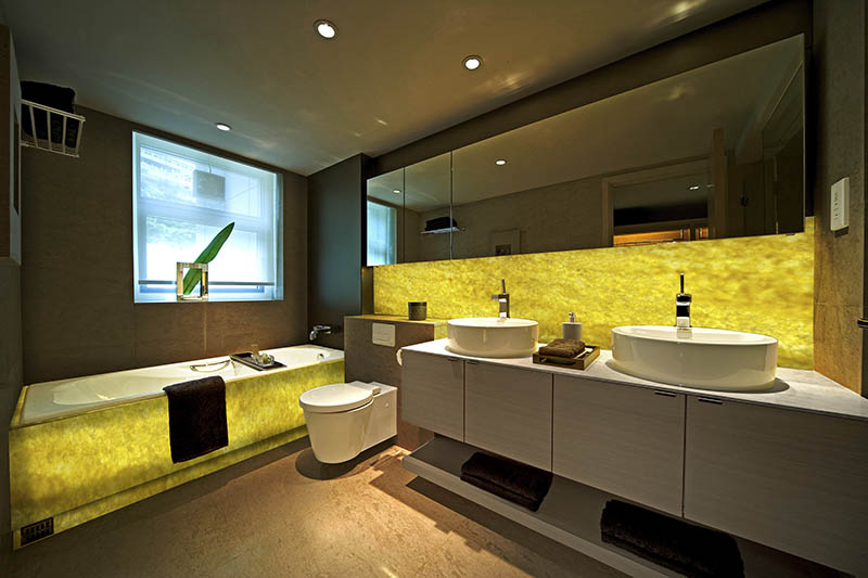 Bath Tub Panels and Backsplash in Crystalline Yellow Onyx