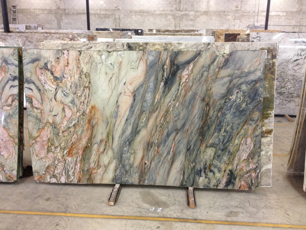This type of non-porous natural stone has a mosaic appearance and is quickly becoming a top choice for builders because of its durability compared to softer stones like marble. It ideal for use as kitchen countertops, due to its resistance to common acidic products like fruit juice and vinegar.