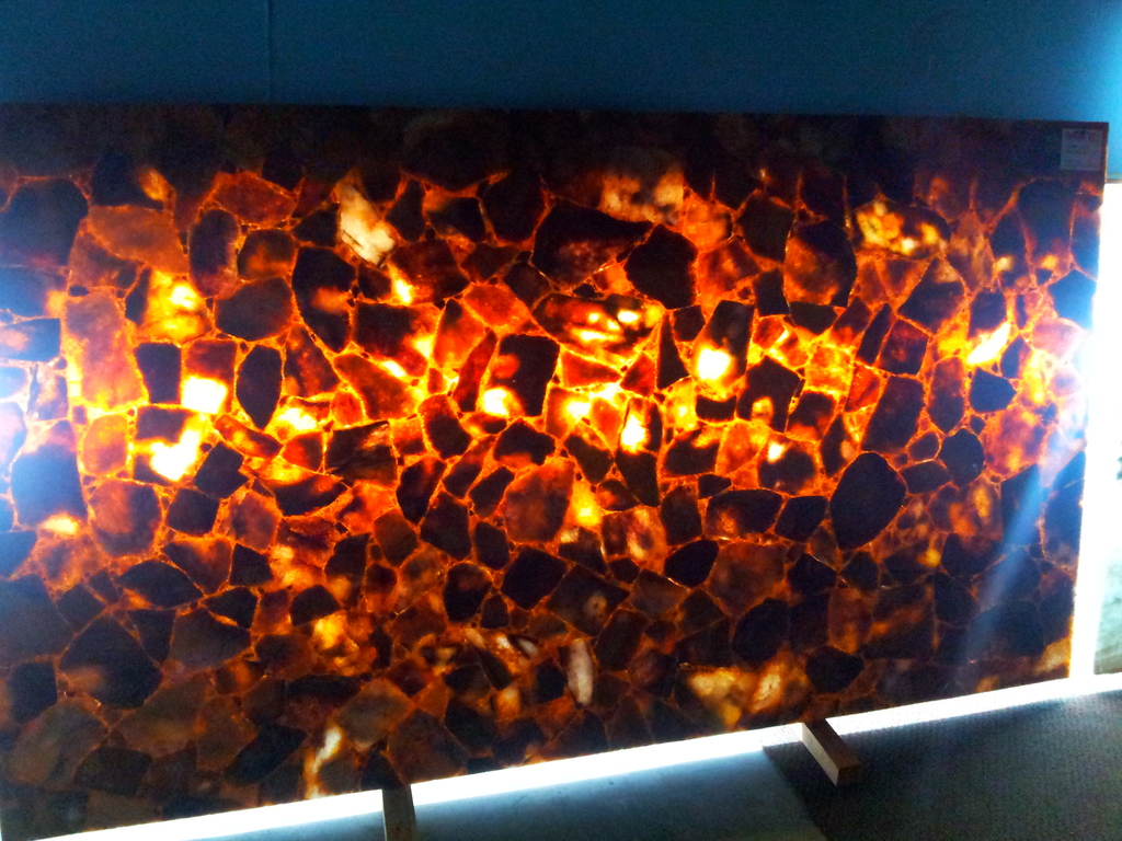 A classic and elegant crystallized stone choice ranging from solid colors to exotic, delicately veined pattern options. Thinner layers of marble are used with backlighting to create sophisticated and inviting environments in the home.